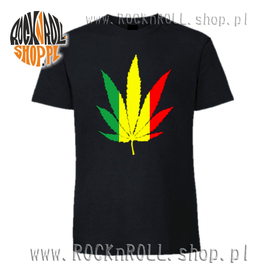 T-shirt z nadrukiem magicznego liścia w kolorach rasta.