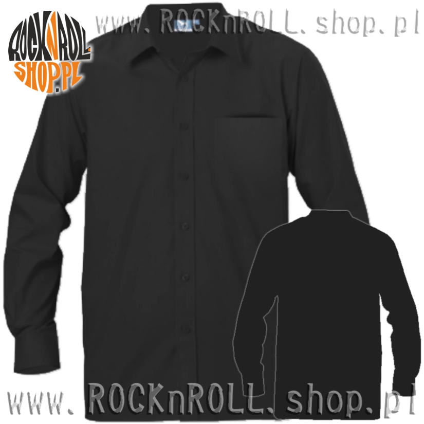 Czarna koszula z długim rękawem bez nadruku.