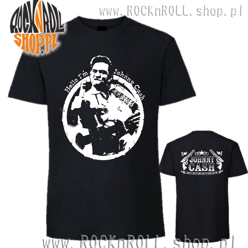 Czarny T-shirt z nadrukiem wizerunku znanej postaci świata muzyki - Johnnego Cash'aNajwyższej jakości koszulka o gramaturze 185g/m2100% wysokogatunkowej jedno-łożyskowej bawełnybez szwów bocznychtaśma wzmacniająca szwy rękawów