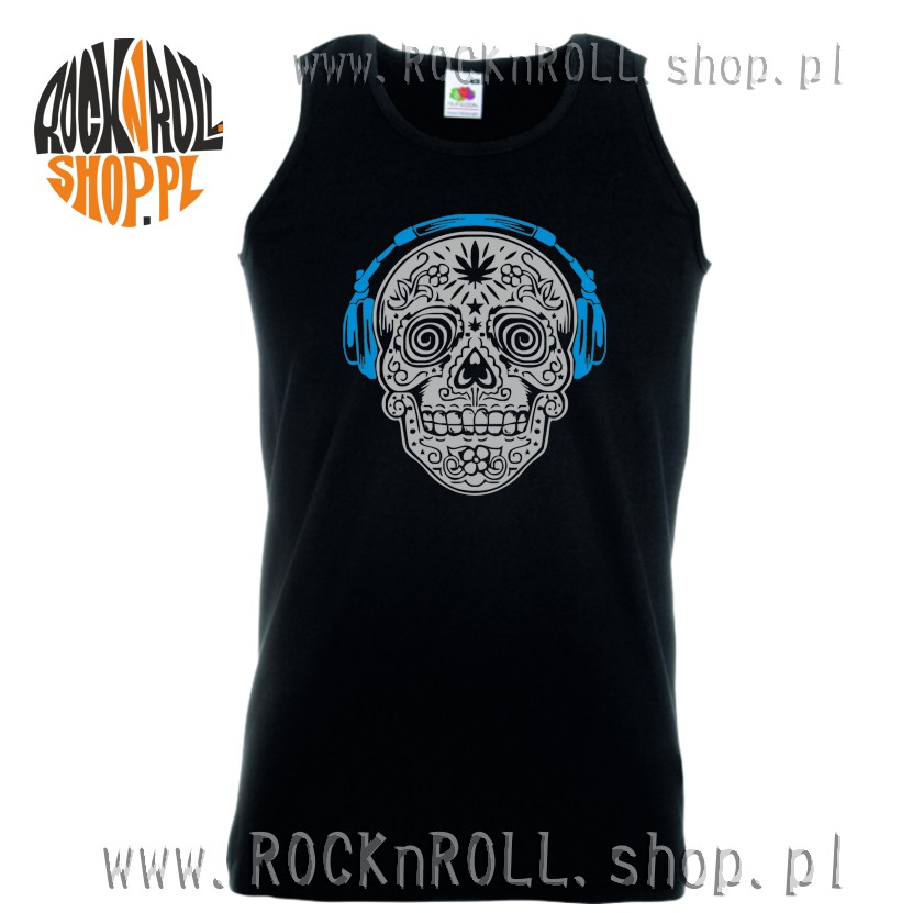 Sleeveless z charakterystycznym nadrukiem rewelacyjnie zdobionej czachy w słuchawkach.