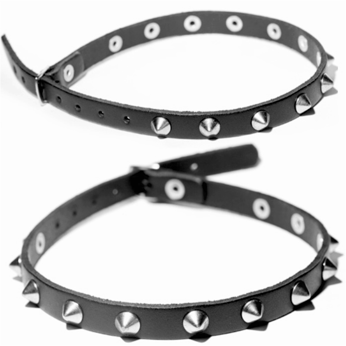 Obroża 1-rzędowa. Wykonana ze skóry naturalnej podklejonej delikatnym zamszem. Nabijana ćwiekami typu Cone-Stud