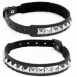 Obroża 1-rzędowa. Wykonana ze skóry naturalnej podklejonej delikatnym zamszem. Nabijana ćwiekami typu Pyramid