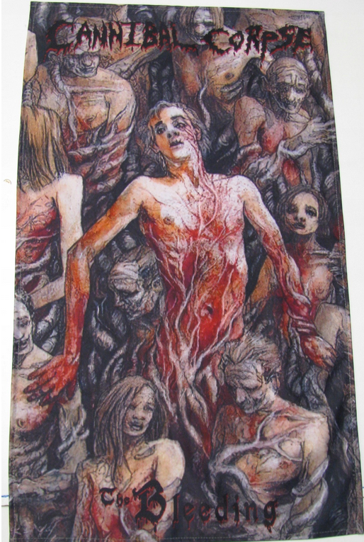 Flaga przedstawiająca okładkę płyty The Bleednig, deathmetalowej grupy Cannibal Corpse
