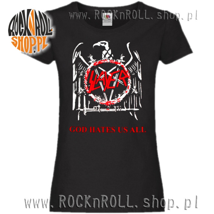 Wygodna koszulka damska przedstawiająca logo ojców thrash'u, zespołu Slayer.