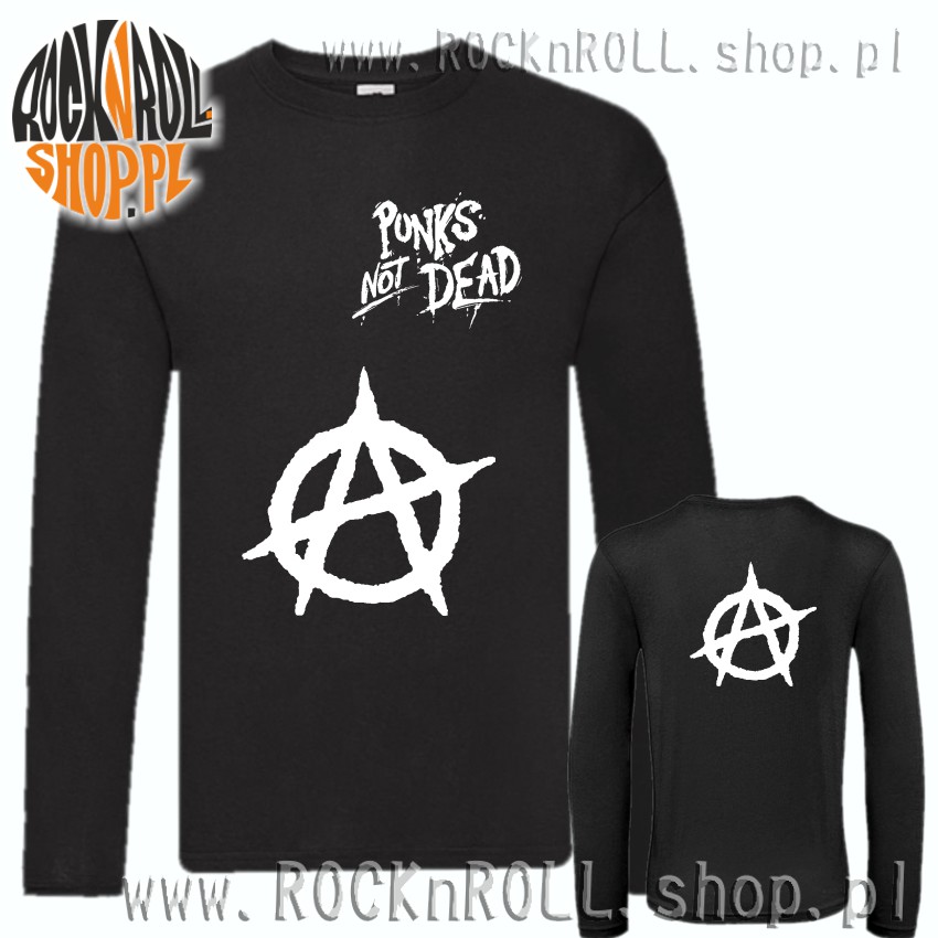 Czarny longsleeve z białym nadrukiem z symbolem punkowej ANARCHII oraz napisem PUNK'S NOT DEAD.
