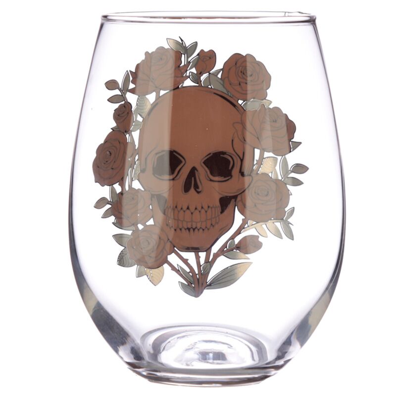 Każda szklanka ozdobiona jest unikalnym nadrukiem przedstawiającym czaszki otoczone pięknymi różami, co nadaje im niezwykłego charakteru.