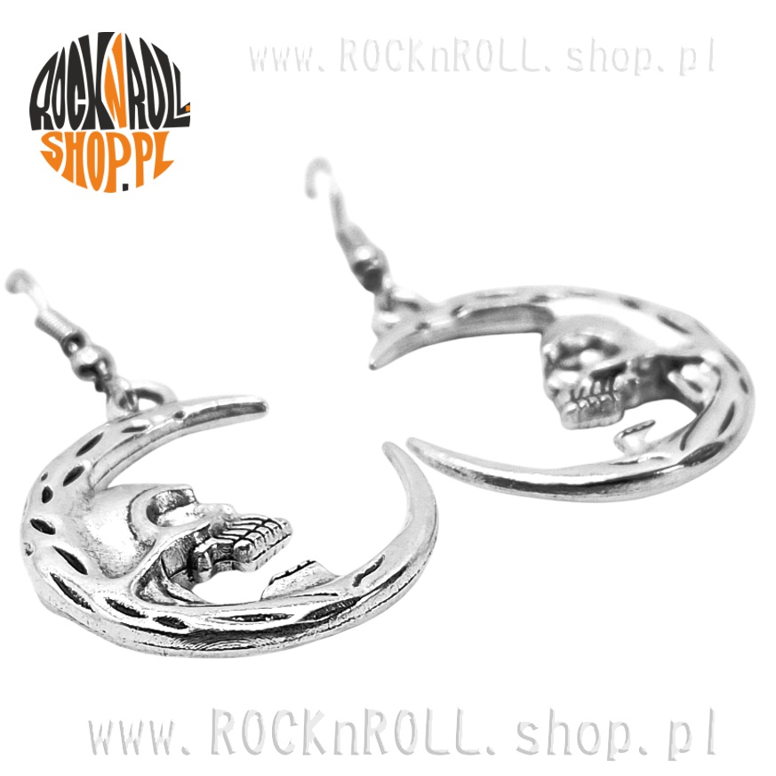 Kolczyki w kształcie księżyca z czaszką w kolorze srebrnym to oryginalny wybór biżuterii.