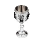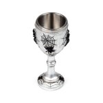 Kielich dekoracyjny z pająkami na pajęczynach to niezwykły element, który z pewnością przyciągnie uwagę każdego miłośnika gotyckich klimatów oraz unikalnych przedmiotów.
