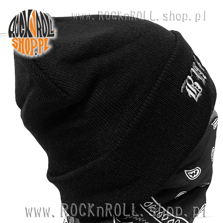Czapka ma klasyczny, podwijany brzeg, na którym umieszczono haft, dzięki czemu napis jest dobrze widoczny.