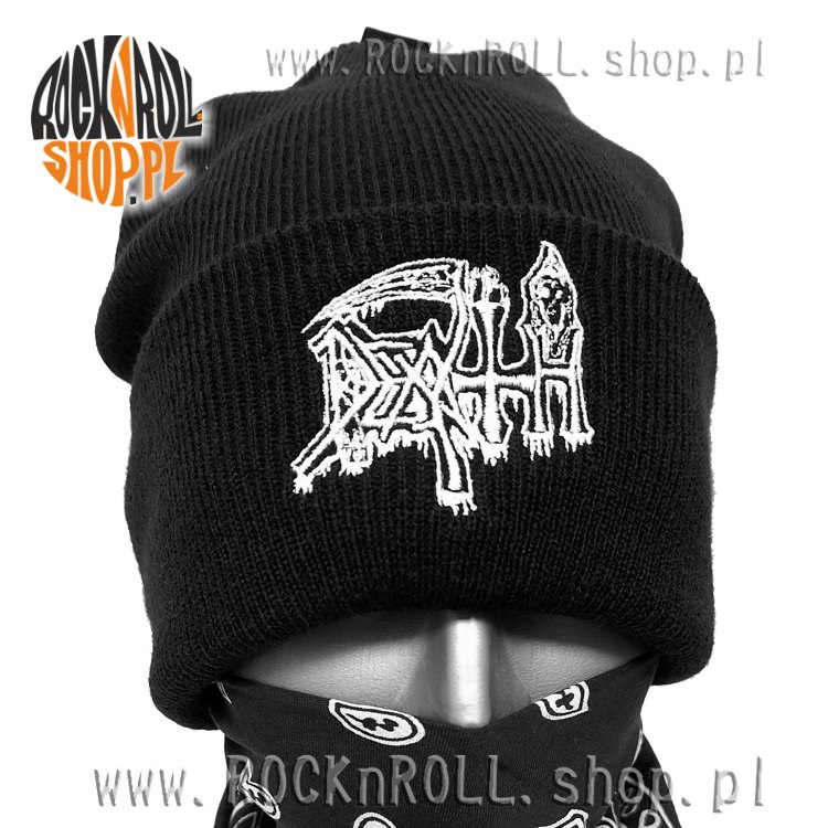 Z przodu znajduje się wyrazisty, biały haft przedstawiający nazwę zespołu Death.