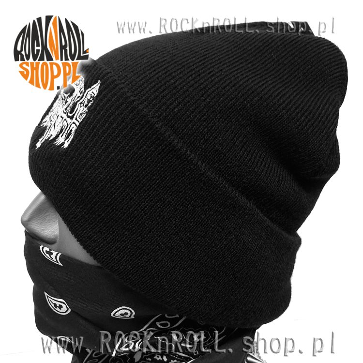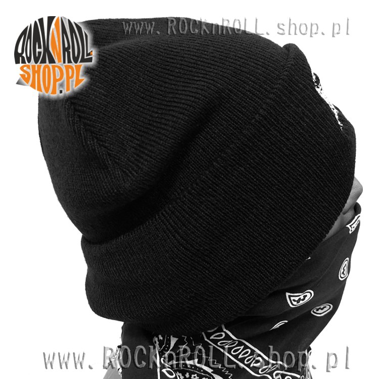Czapka ma klasyczny, podwijany brzeg, na którym umieszczono haft, dzięki czemu napis jest dobrze widoczny.