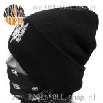 Czarna, zimowa czapka wykonana z wełny akrylowej, która dobrze dopasowuje się do głowy i zapewnia ciepło.