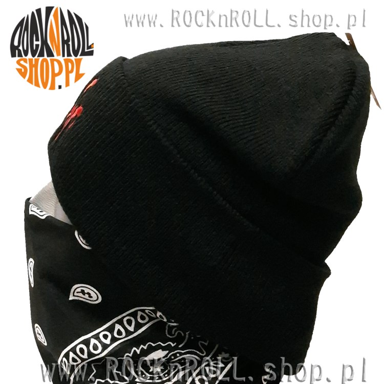 Z przodu znajduje się wyrazisty, czerwony haft przedstawiający logo zespołu KoRn.