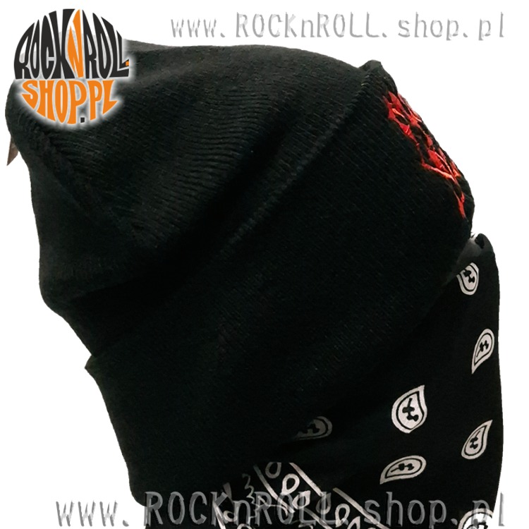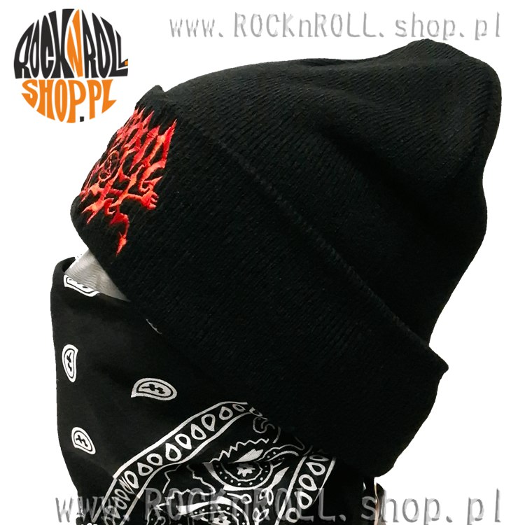 Czapka ma klasyczny, podwijany brzeg, na którym umieszczono haft, dzięki czemu napis jest dobrze widoczny.