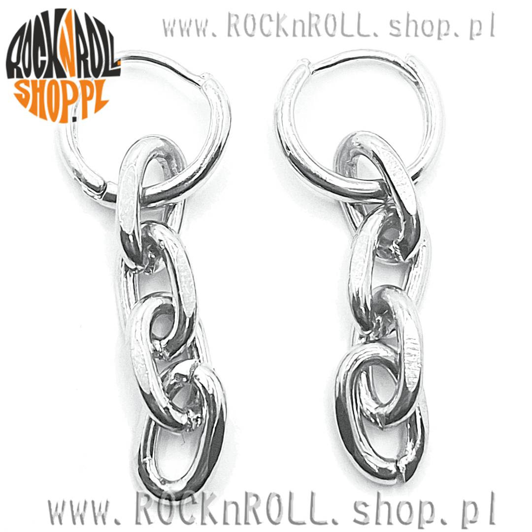 Kolczyki w kształcie kółek z łańcuchami w kolorze srebrnym to doskonały wybór dla osób, które chcą wyróżnić się z tłumu i dodać swojej stylizacji odrobinę pazura.