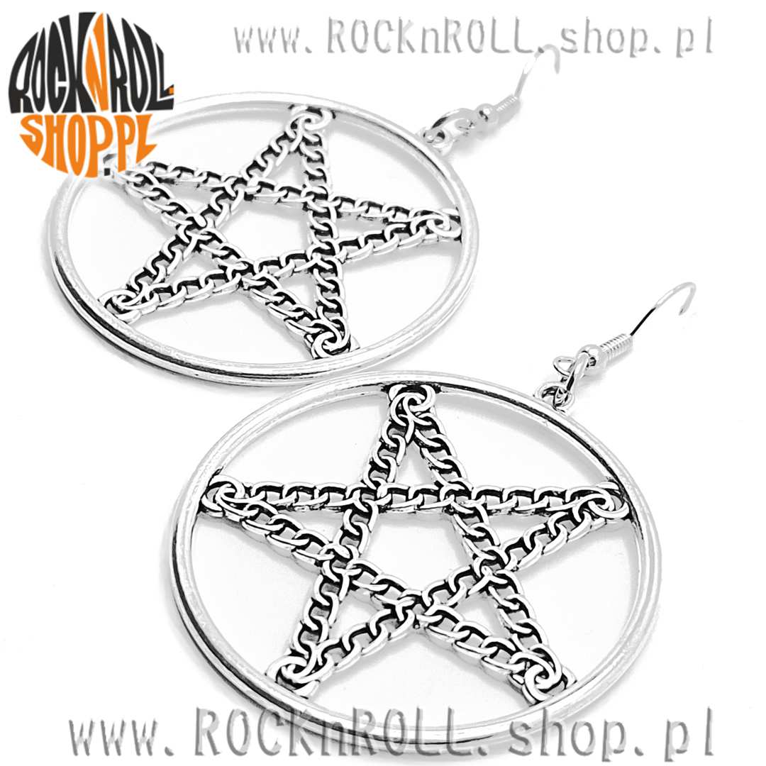 Kolczyki koła z łańcuchowym pentagramem kolorze srebrnym to wyrazisty dodatek dla osób, które chcą wyróżnić się z tłumu i podkreślić swój indywidualny styl.