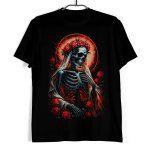 Koszulka męska w kolorze czarnym ze wzorem przedstawiającym martwą pannę młodą.