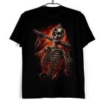Koszulka męska w kolorze czarnym ze wzorem przedstawiającym piekielnego szkieleta.