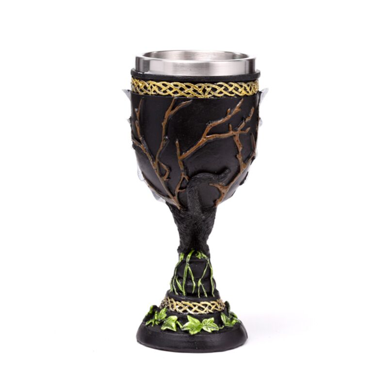 Wykonany z żywicy i stali nierdzewnej, kielich zachwyca detalami i gotyckim stylem.