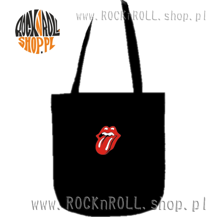 Pojemna torebka ekologiczna na ramię z długim uchem. Posiada nadrukowane logo znanej muzycznej grupy The Rollling Stones.