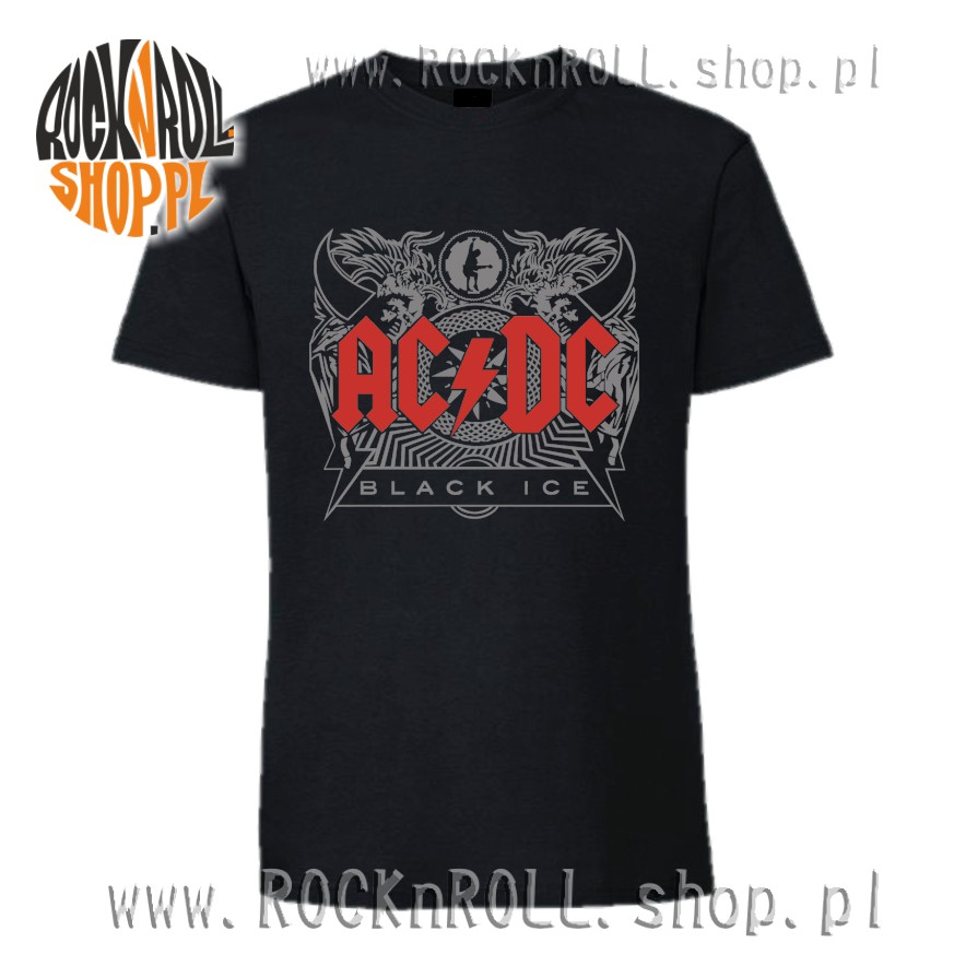 Klasyka hard-rock'a - grupy AC/DC - z nadrukiem okładki płyty pt: "Black Ice" - na czarnym komfortowym t-shircie.
