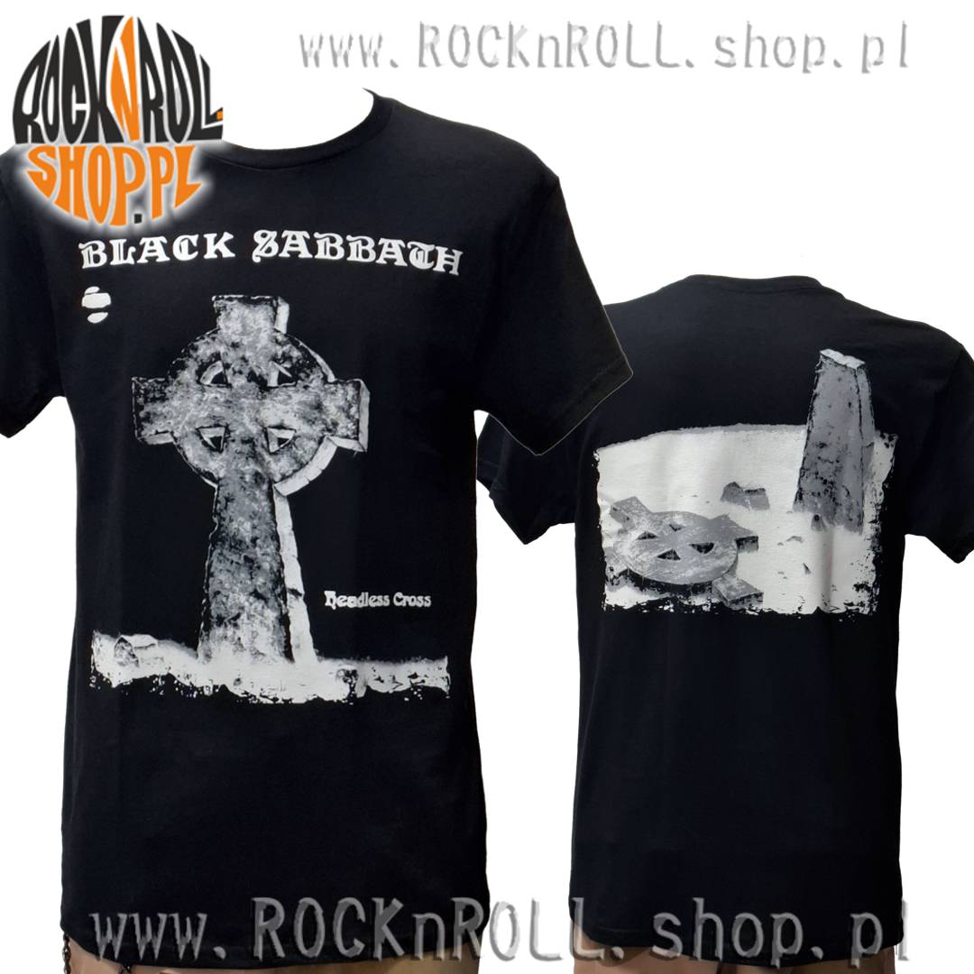 Świetny czarny t-shirt z drukowanym logiem legendarnego zespołu Black Sabbath i okładki ich 14go studyjnego albumu Headless Cross.