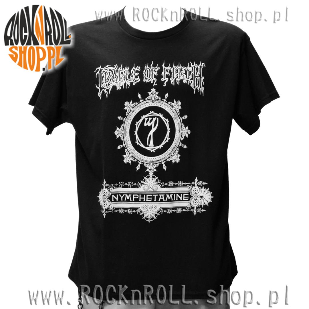 Świetny czarny t-shirt z logiem popularnego zespołu z gatunku black/gothic metalu Cradle Of Filth i jednego z ich najnowszych dzieł "Nymphetamine".