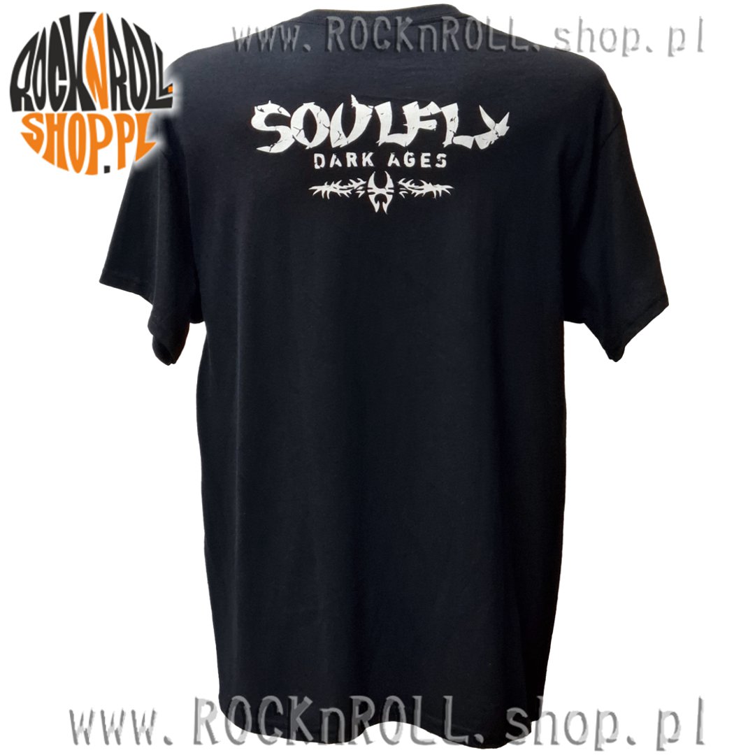 Czarny t-shirt z nadrukiem loga zespołu Soulfly oraz ich mrocznej okładki płyty pt. "Dark Ages".