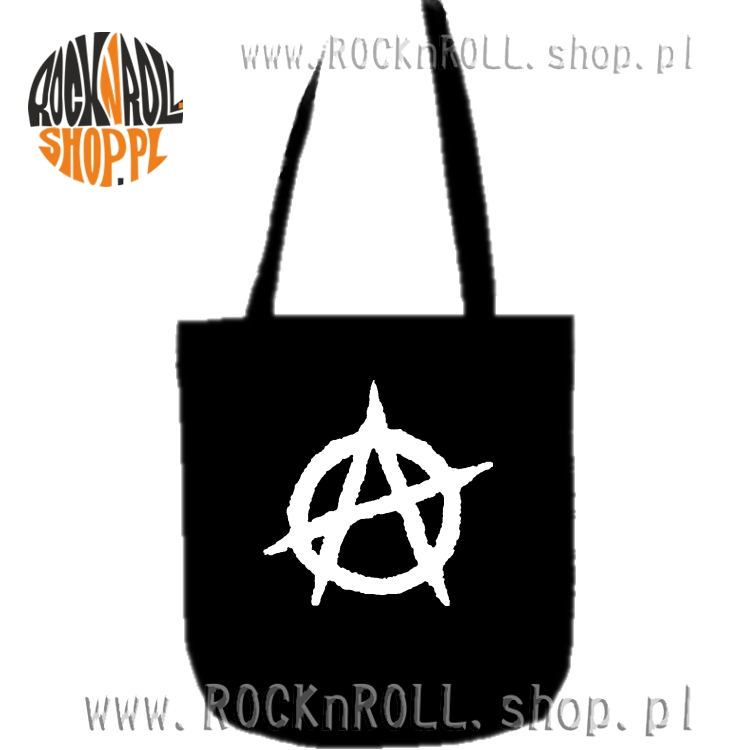 Czarna torba ekologiczna na ramię z długim uchem, bardzo wygodna i pojemna. Posiada biały nadruk nieśmiertelnego symbolu ANARCHII.