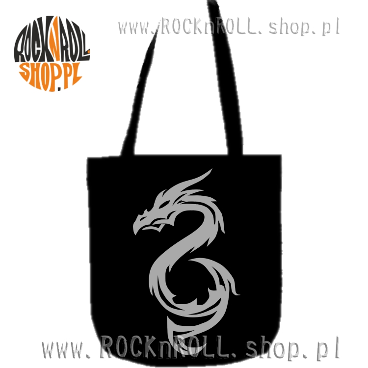 Czarna wygodna i praktyczna torba ekologiczna z grafiką smoka. Prosty, lecz wyraźny i bardzo fajny wzór.