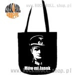 Czarna wygodna i praktyczna torba ekologiczna z grafiką ikony polskiej popkultury lat '70 - Hans Kloss ''Mów mi Janek''