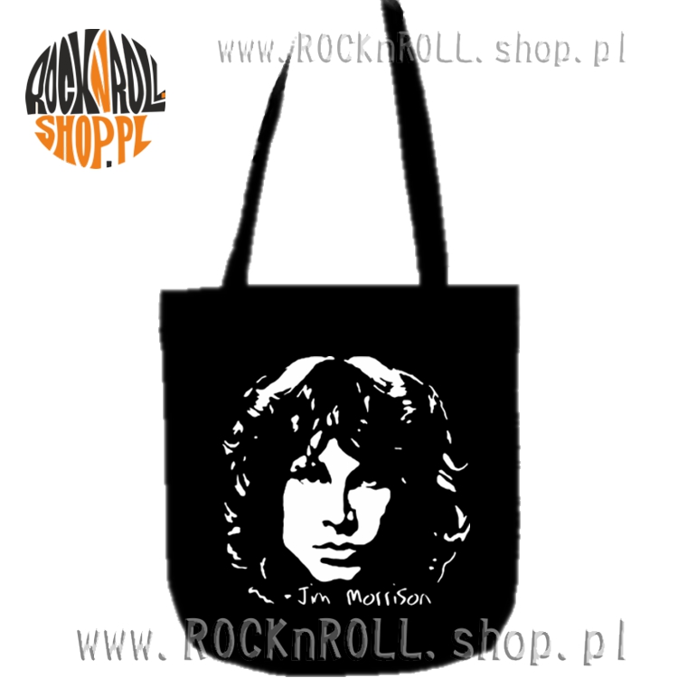 Czarna wygodna i praktyczna torba ekologiczna przedstawiająca Jima Morrisona, frontmana sławnego zespołu rockowego The Doors