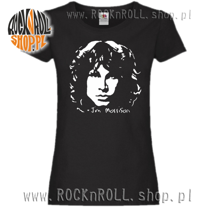 Czarna koszulka damska z postacią gwiazdy muzyki rockowej i frontmana slynnego zespołu The Doors - Jima Morrisona