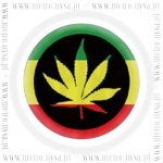 Drobny i ciekawy gadżet z grafiką liścia w kolorach rasta.
