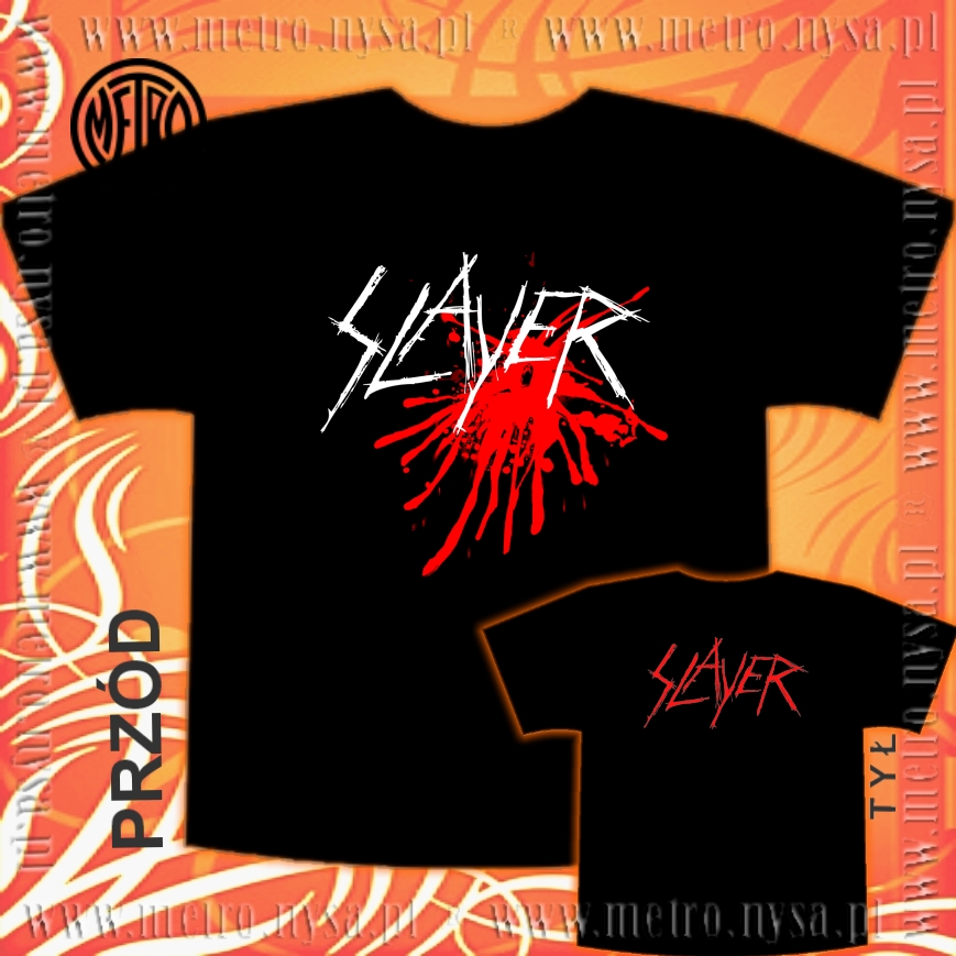 SLAYER - krwawo i bezkompromisowo.Najwyższej jakości koszulka o gramaturze 185g/m2100% wysokogatunkowej jedno-łożyskowej bawełnybez szwów bocznychtaśma wzmacniająca szwy rękawów