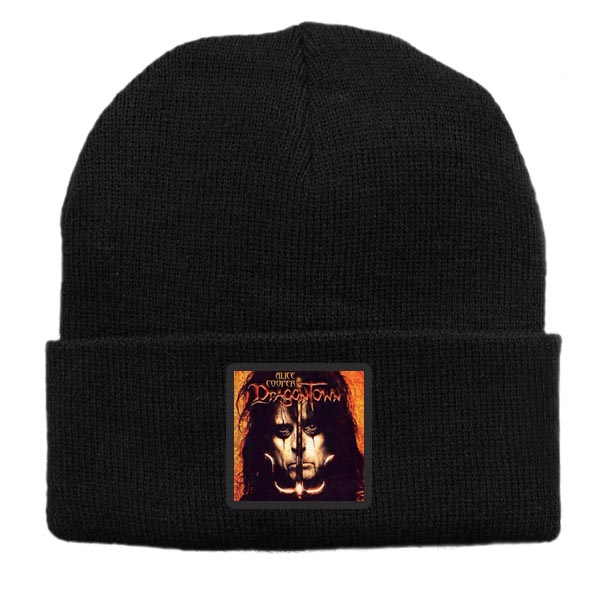 Czapka z wełny akrylowej w kolorze czarnym z motywem zespołu Alice Cooper.