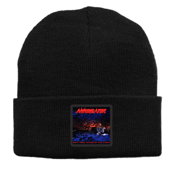 Czapka z wełny akrylowej w kolorze czarnym z nadrukiem zespołu Annihilator..