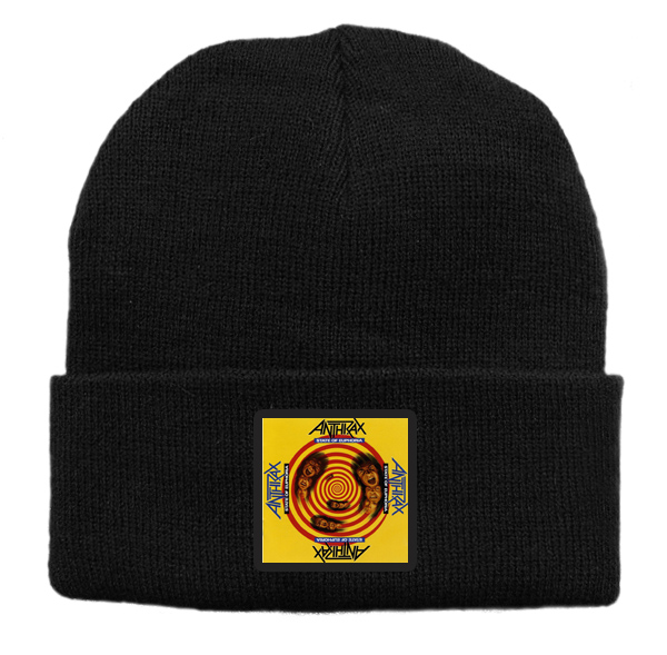 Czapka z wełny akrylowej w kolorze czarnym z nadrukiem zespołu Anthrax.