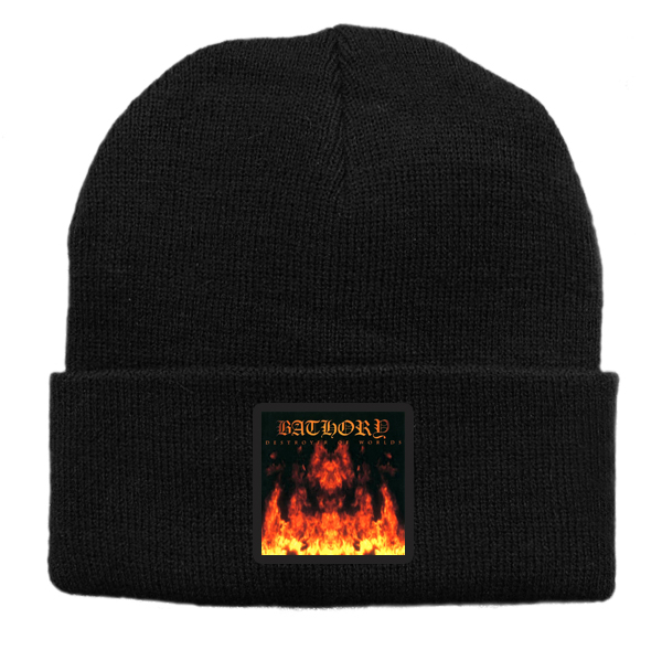 Czapka z wełny akrylowej w kolorze czarnym z nadrukiem zespołu Bathory.