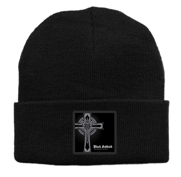 Czapka z wełny akrylowej w kolorze czarnym z nadrukiem zespołu Black Sabbath.