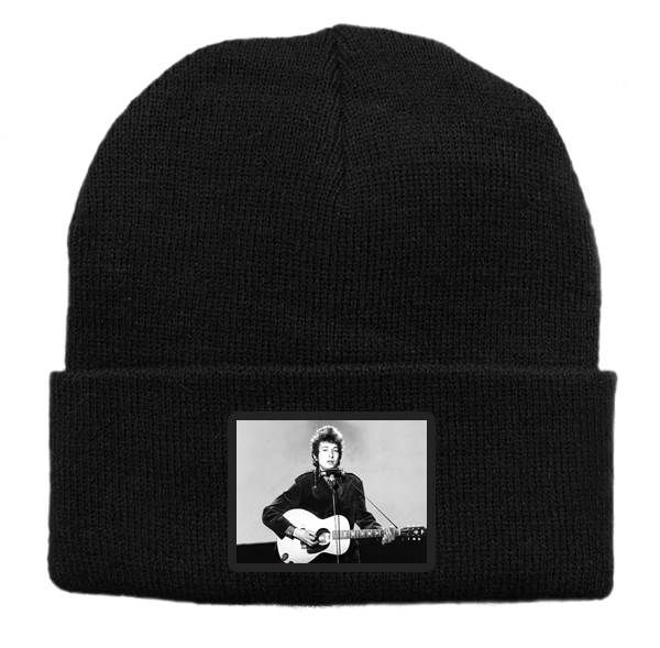 Czapka z wełny akrylowej w kolorze czarnym z nadrukiem Boba Dylana.