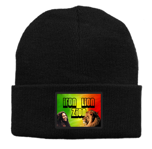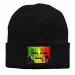 Czapka z wełny akrylowej w kolorze czarnym z nadrukiem  Boba Marleya.