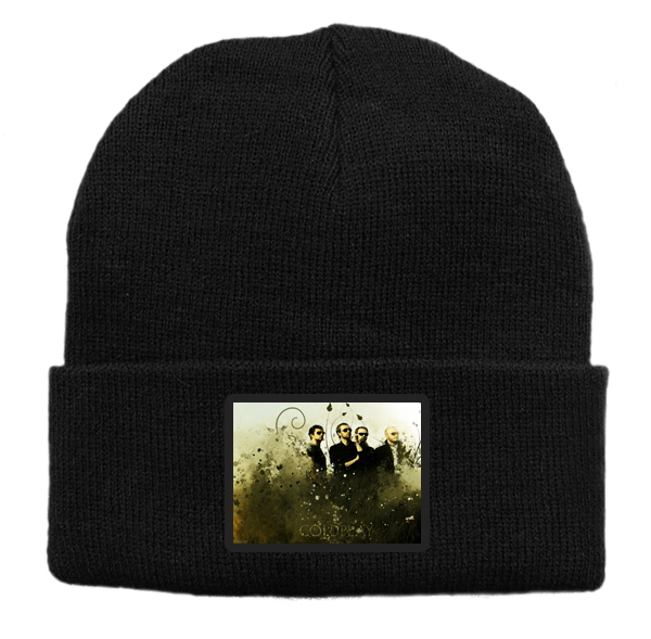 Czapka z wełny akrylowej w kolorze czarnym z nadrukiem zespołu Coldplay.