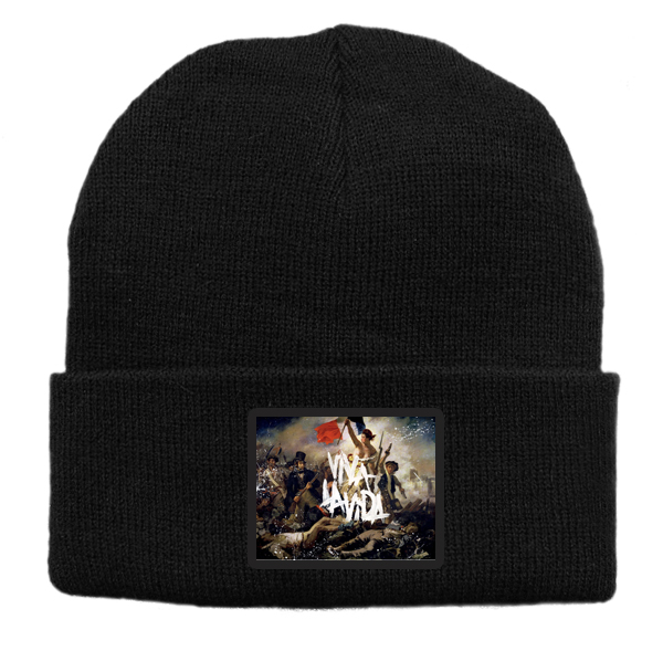 Czapka z wełny akrylowej w kolorze czarnym z nadrukiem zespołu Coldplay.