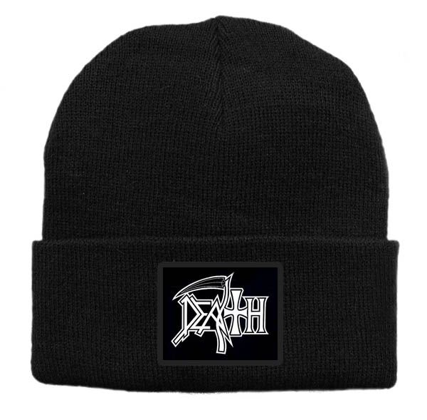 Czapka z wełny akrylowej w kolorze czarnym z nadrukiem zespołu Death