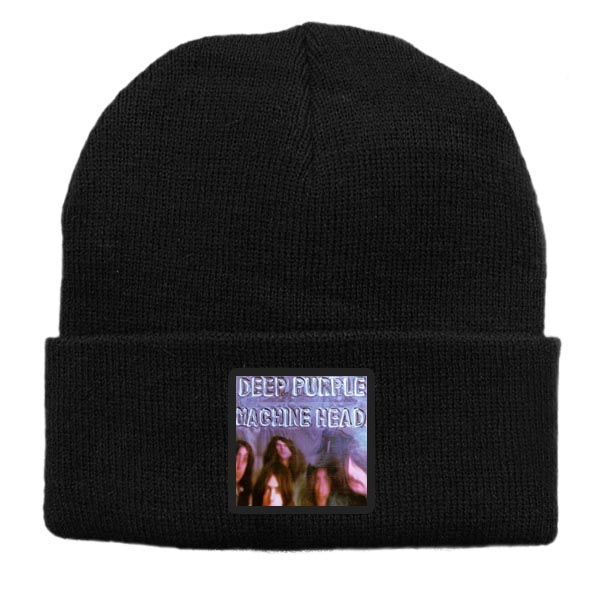 Czapka z wełny akrylowej w kolorze czarnym z nadrukiem zespołu Deep Purple.