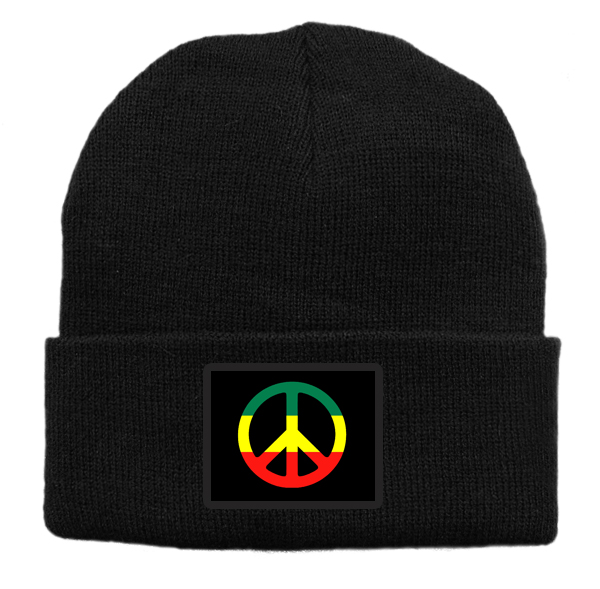 Czapka z wełny akrylowej w kolorze czarnym z rasta pacyfką.