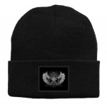 Czapka z wełny akrylowej w kolorze czarnym z gotyckim motywem.