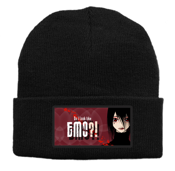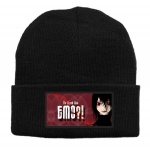 Czapka z wełny akrylowej w kolorze czarnym z grafiką emo.