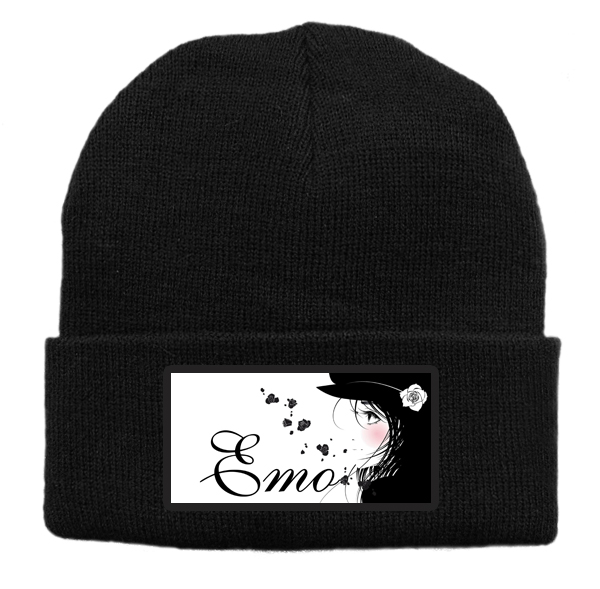 Czapka z wełny akrylowej w kolorze czarnym z grafiką emo.